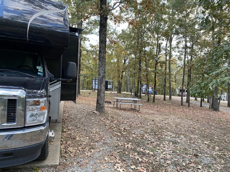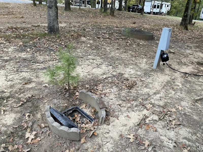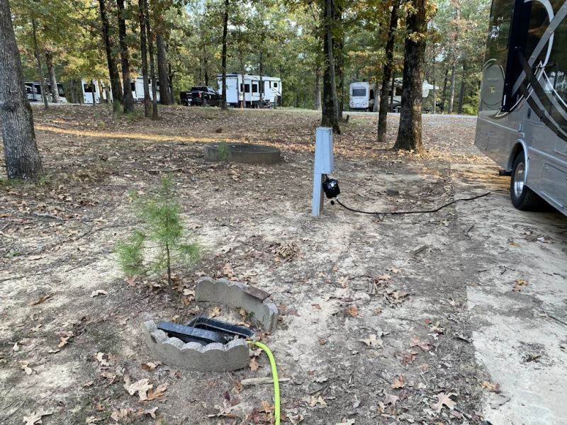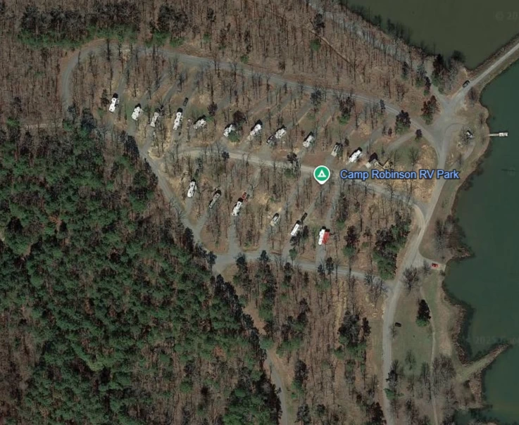 Rustic, but fully shaded RV spots, ensuring comfort and privacy during your stay. FHU, with concrete pad, picnic table and fire ring. Locked electric stanchion with 30/50amp connections, below ground containment with access to septic and water. Suggest using an RV water pressure regulator as supply appears to be very robust. Three loops for the RVs: sites 2-16 back-in, while 18-34 are awesome pull-throughs. Four small cabins at sites 1, 2, 16, 22. Pavilion with grill in front of the RV loops. Boat launch and fishing pier on the shore of the Camp Robinson Lake #2. Small PX. No bathhouse or in-campground common facilities. Roads are either gravel at each site or paved on the outer edges of the loops. Post access through contractor security guards but also have base police force that supports check-in after hours. Post billeting office open 7:30am to 4:30pm. Phone contact is (501) 212-5039. Reservations open at the beginning of the month to allow handling of possible Arkansas National Guard use of the campground training/deployment needs. Must get key for access to electric connections on each RV site. In the fall, much nicer than the MWR camp at Little Rock AFB, but during wet season might be challenging with runoff and flow management. WiFi (Mbps) Starlink 30 down/2 up; T-Mobile 422 down/7 up.
