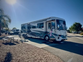 We were very happy with this park. Friendly staff and easy check-in. I was able to select my site and we parked near showers and a dog park. All sites are pull-throughs and big enough for a 45' rig wit parking your tow vehicle on the side. The park is big rig friendly and maneuvering was simple. It’s a great location to visit the local sites.