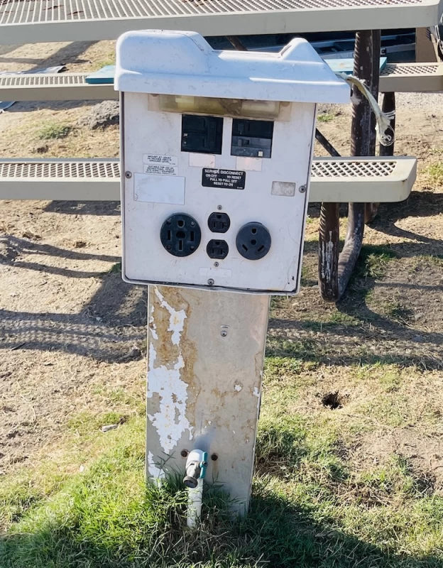 Last winter there were more open spots than occupied spots. - Large Groups Welcomed: San Onofre Beach Camp Pendleton Ball Field / dry camping - rented out to tent and RV campers, +200 people, these are large nice, civilian groups. Great for YMCA, Boy Scouts. On the non plus side: Fire safety, some of these groups have unsecured open bonfires. Pits with rings are supplied in the ball field - but these are not enough for the large groups - so they just build in anywhere. Open, no rings. Where is security? - Facilities: **Women's restroom, see photos, black mold in the showers. Entry door does not close hangs open ( door top hinge rusted off, not replaced ) so it's left open to whomever. This is an Open Air Bathroom. So at night you may be greeted by a thirsty coyote, skunk, or lost bird. Really... Door is open. To me this is a safety issue for all the children who wander unattended, and shower in there. There are coded door locks, but since entry door does not close behind you, it is NOT secure. - Dump Station: During the rainy months of Feb / March, the dump station over FILLING, comes out across the road. They know, they look, they leave. By They I mean the management, the base facilities. Seen them come out, observe, and leave. Photos of UN-Flooded Dump Station. So where does the money go? There must be six different managers of San Onofre Recreation Beach, manager at site, assist manager at site, then at MCCS headquarters there are +five more managers who oversee SANO. Have any of them actually seen the conditions of restrooms, showers, ground squirrel holes in the RV Spots ( over 90 in my spot last stay ), non working filthy, laundry facilities ( was told new washers and dryers coming Nov 2025 - this is a contracted out service provided by CSC ServiceWorks, Inc.NY / NJ ). - Stuff to know if you go: - Great sunsets, gotta start with a pleasant memory. - Bluff RV Spots ( water and electricity, no sewer, $74 a night ) are small & very uneven, with lots of 'ground hole making' critters. Neighbors: you are smack right on top of your neighbor. -Tents Unlimited? personal experience, up to five tents allowed, 4 family sized & one shade for cooking. In excess of 12 people. Again these are small spots so above family parked half of their tents on the pavement in front of spot. Where is security? Thought 3 tents were allowed. -** Bluff RV Spot Round Fire Pits: your neighbor, the adjacent camper’s RV Spot Fire Ring is less than 4' from the rear of next door motorhome really. - Infra-structure Power Pedestal for Electricity & water: see photos, bring a surge protector or don't come. Unstable. Staffing: Front desk 99% percent nice as can be. Do any of them ever see the campground, the lack of maintenance, the security issues - wish they could wander in the restroom of campground? It is like the maintenance staff has given up. When asked about cleaning bathroom floors, it is once a month…really, and that is only after they got the “new” power washer, so it is a rinse out not a cleaning.