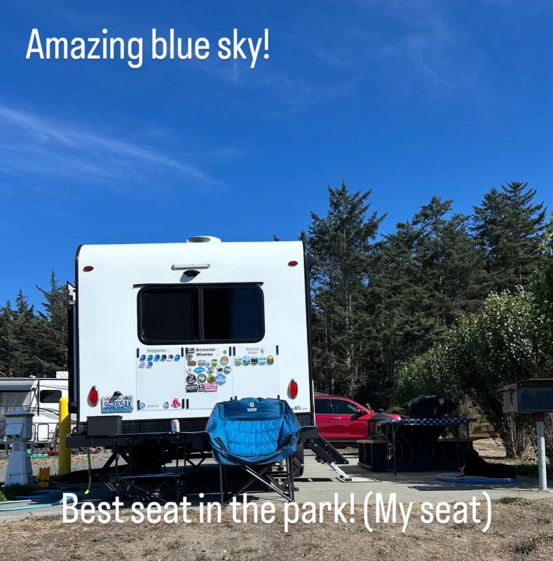 We had a wonderful stay over the holidays, and enjoyed the decorations in several campsites. Although very windy, we enjoyed the eagles that visited almost every day. We really appreciated the visit from the jolly ole elf himself on Christmas Eve to complement us on our outdoor ocean-themed Christmas Tree. It's a beautiful park, well landscaped, clean, and well maintained. We truly appreciated the wonderful ADA showers. The ocean view and sounds of crashing waves are a bonus. Catching big trout at nearby Pass Lake added even more to our experience. We definitely plan to return.